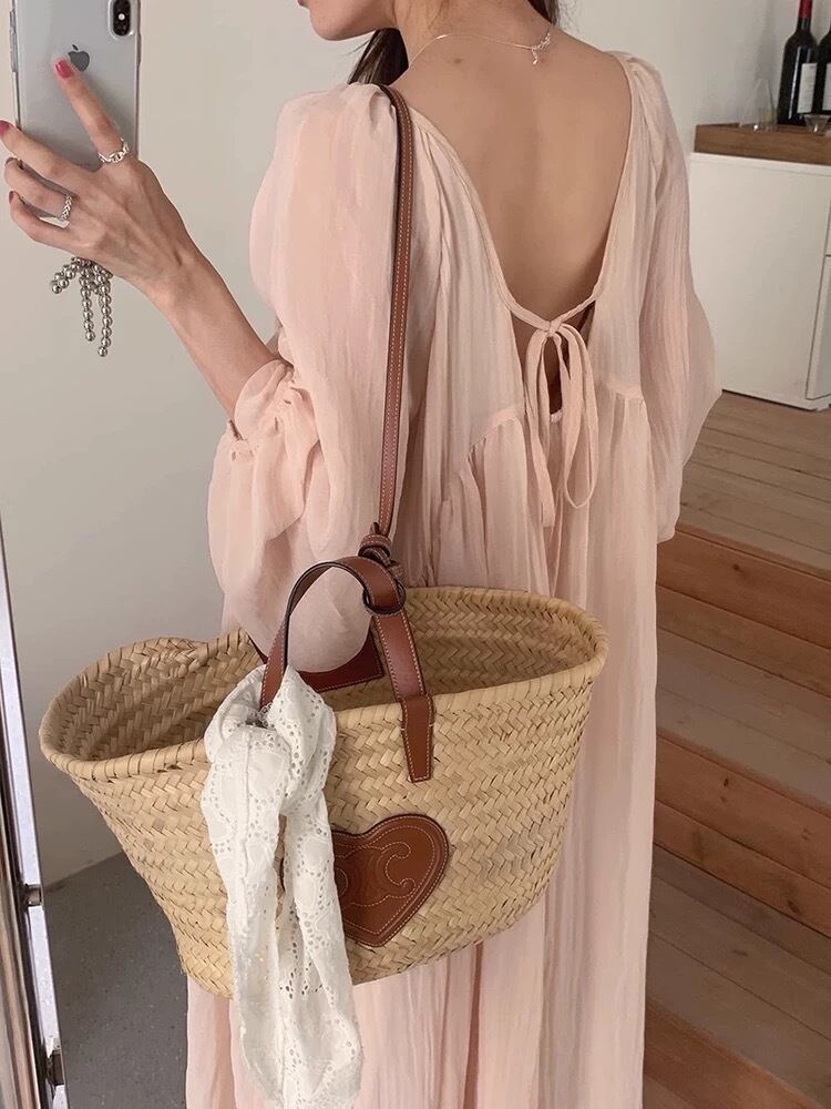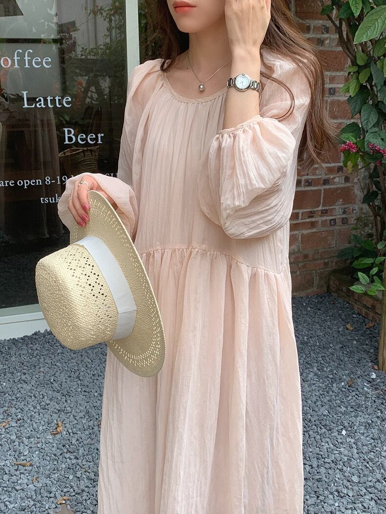 フレンチパフスリーブ バックレースアップワンピース YH8888