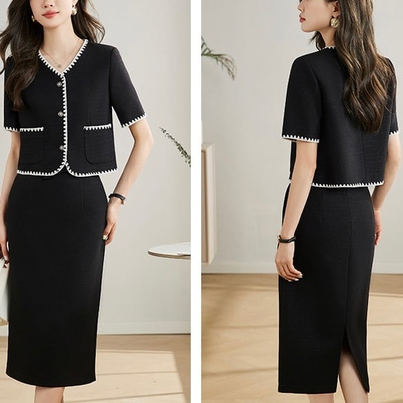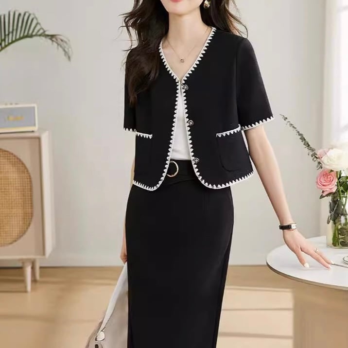 半袖トップス+スカート 上品2点セット ◆2col YH9405