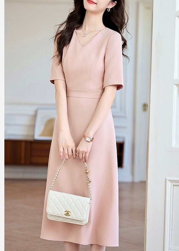 通勤 Vネック半袖ブラックワンピース ◆2col YH9409