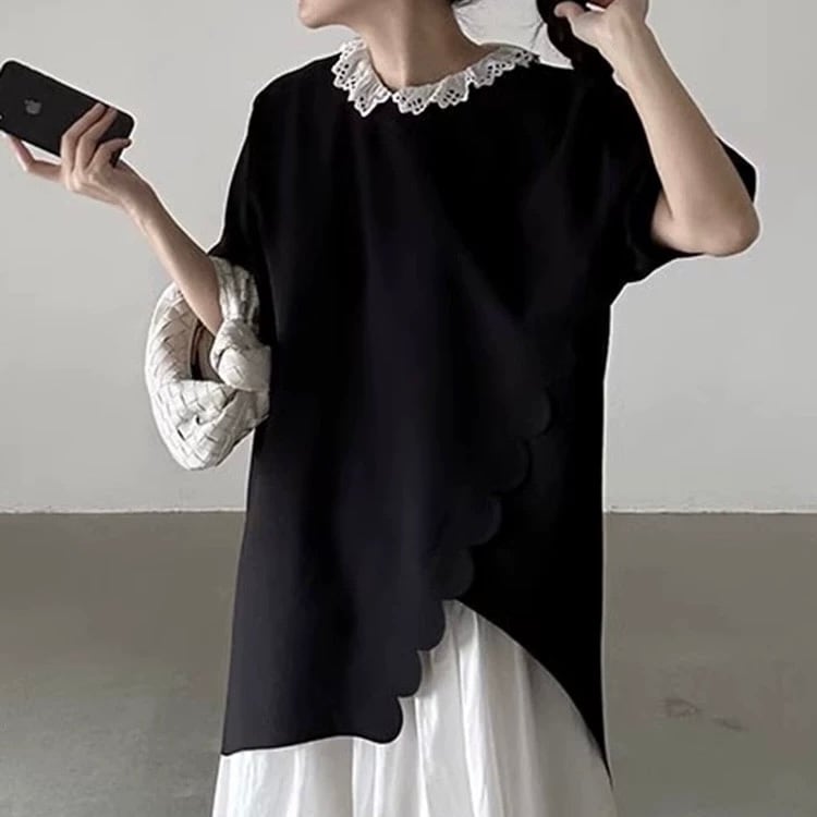 アシンメトリースカラップヘムTシャツ ◆2col YH9474