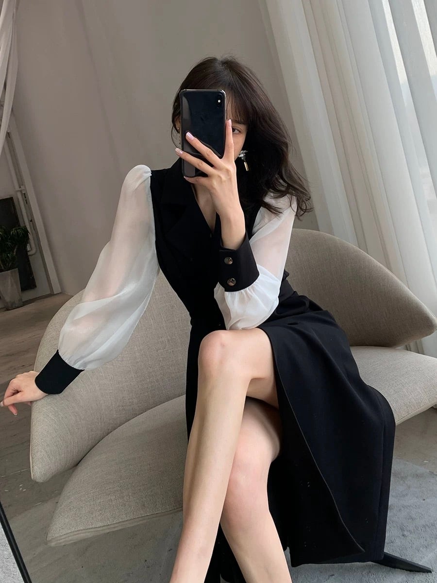ウエストスリム ヘップバーン風ロングワンピース YH9516
