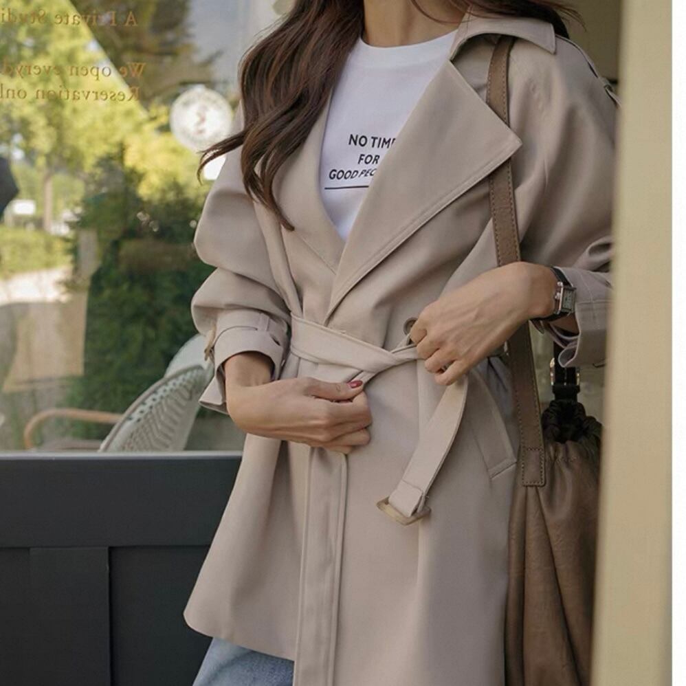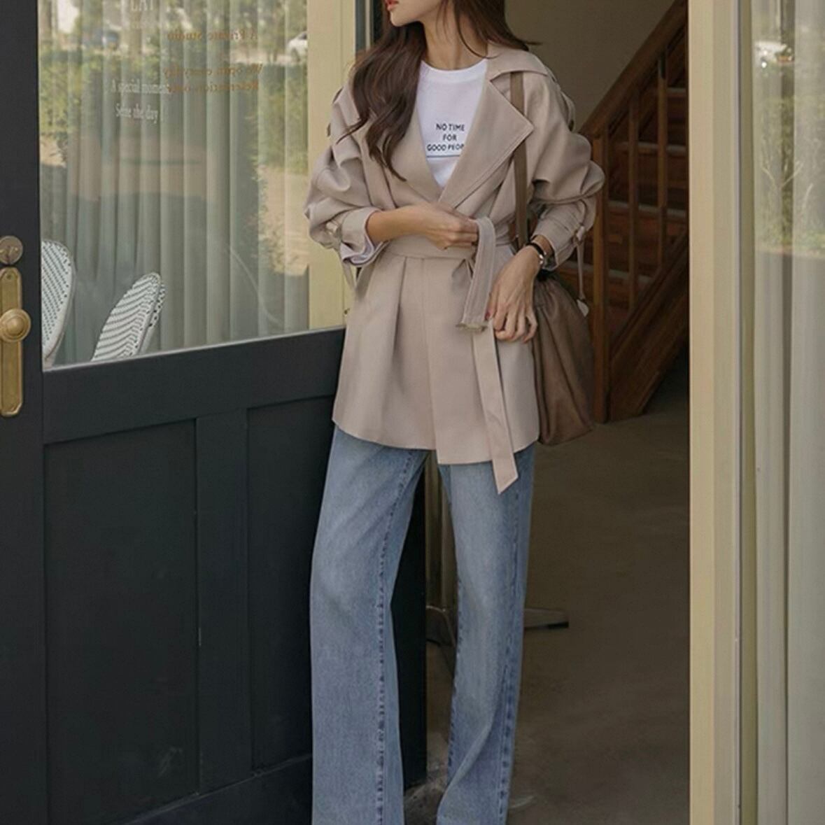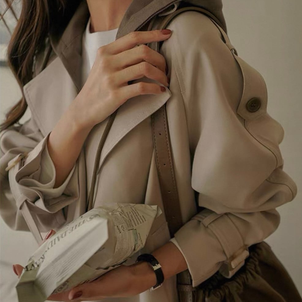 トレンチ風のデザインが大人っぽく、デニムとも相性◎。