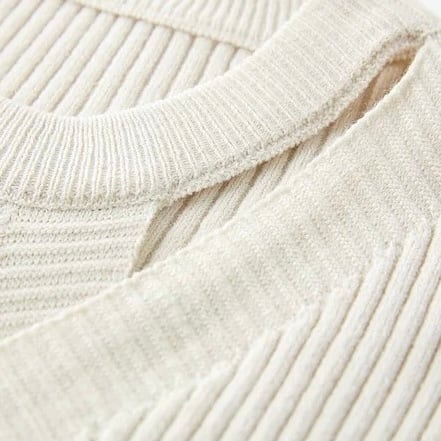 柔らかくしなやかなリブニットが動くたびに優雅に揺れ、女性らしさを引き立てます。
