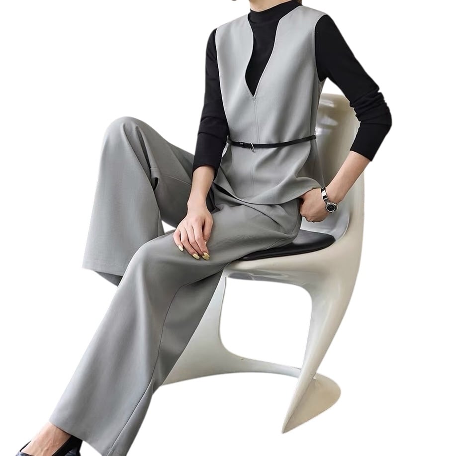 ビッグVネックベスト+ワイドパンツ 2点セット ◆2col YH9575