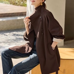 ベルト付きスタンドカラーレトロ風トレンチコート H9596