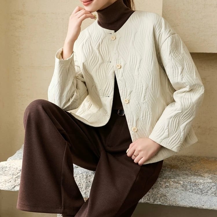 キルティング ノーカラー 長袖 ショート ジャケット ◆2col YH9658