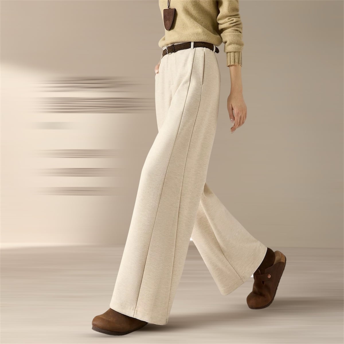 洗練されたシルエットで、大人の女性らしさを引き立てるフルレングスパンツ。