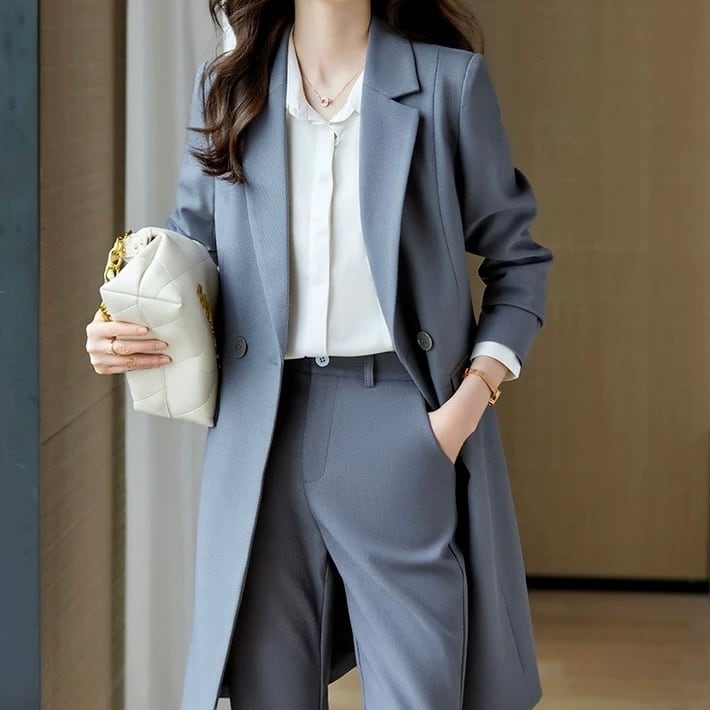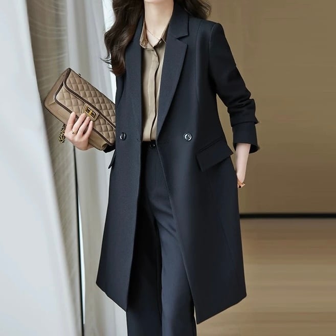 ダブルブレスト ロング丈 ノッチドラペル ジャケット+ボトムス2点セット ◆4col YH9682