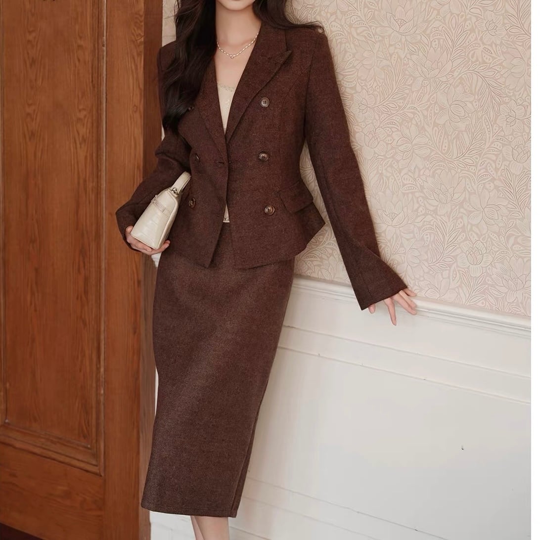 ダブルブレスト 長袖 クロップド丈 ジャケット YH9698