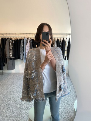 ボタンフロント ヒップ丈 ノーカラージャケット ◆2col YH9727