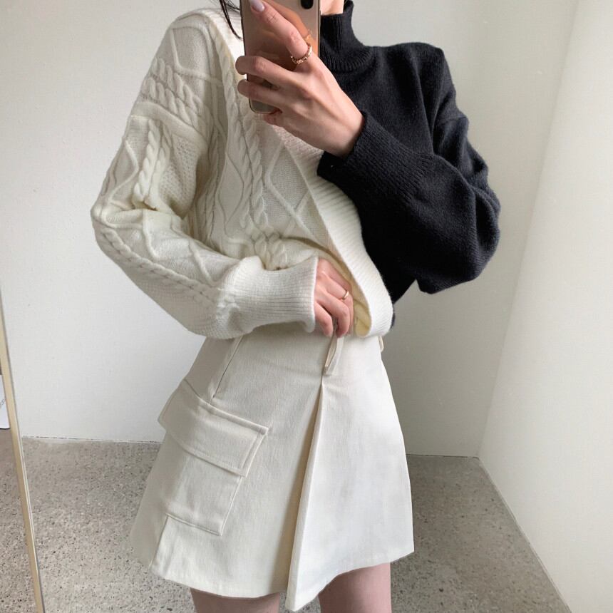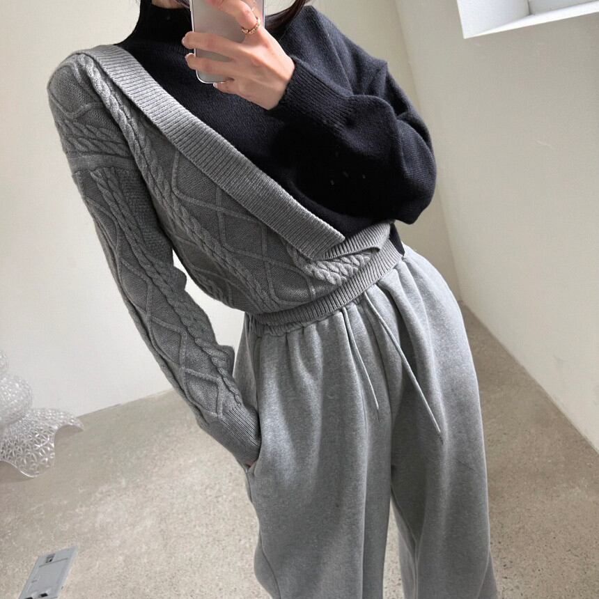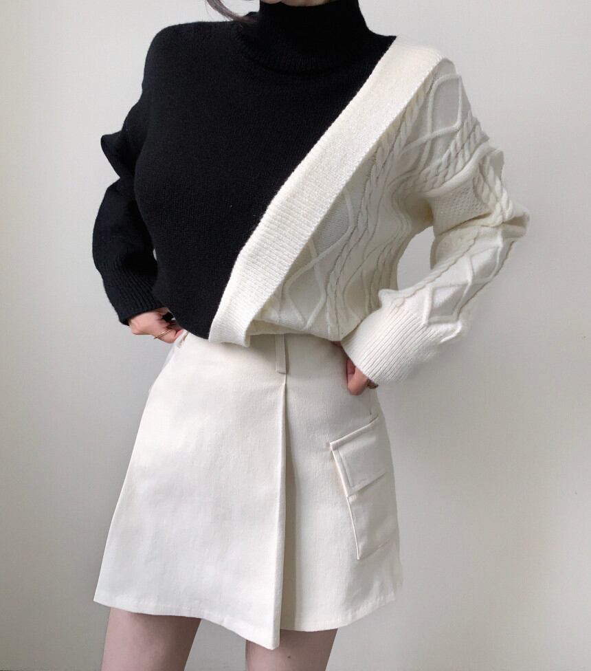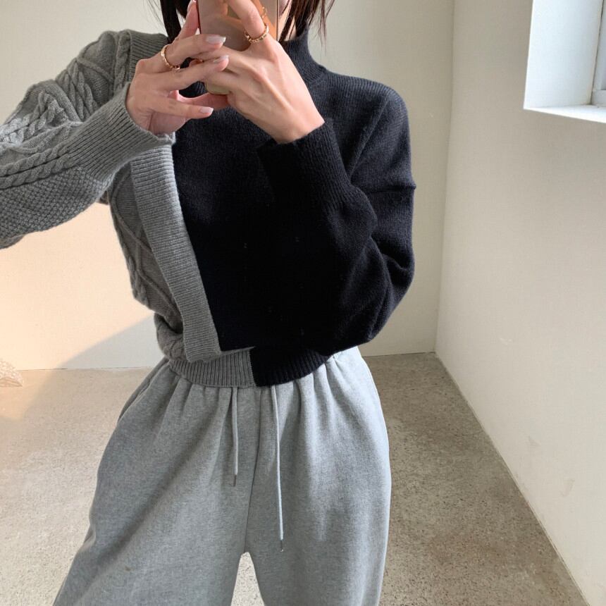 アシンメトリー 長袖 クロップド丈 ニット ◆2col YH9725