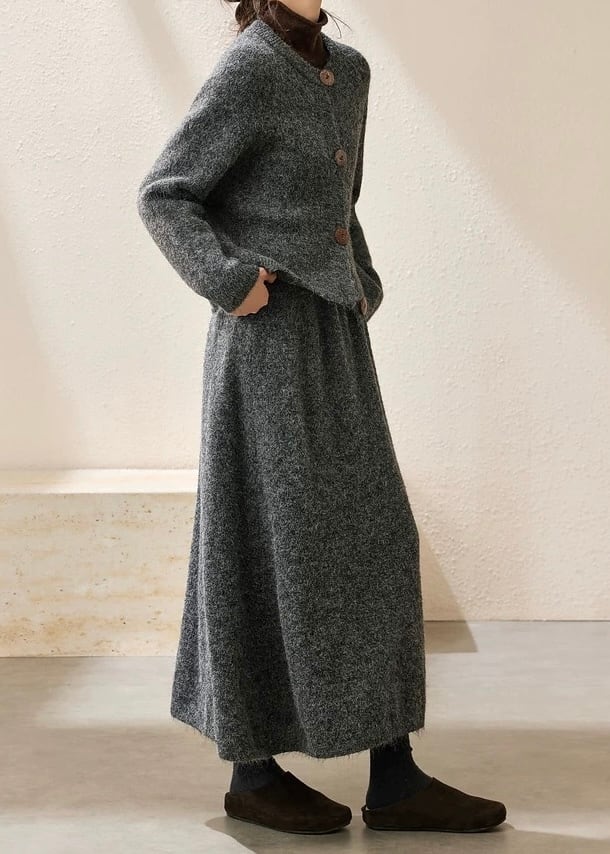 ボタンフロント ニットカーディガン・スカート 2点セット YH9721
