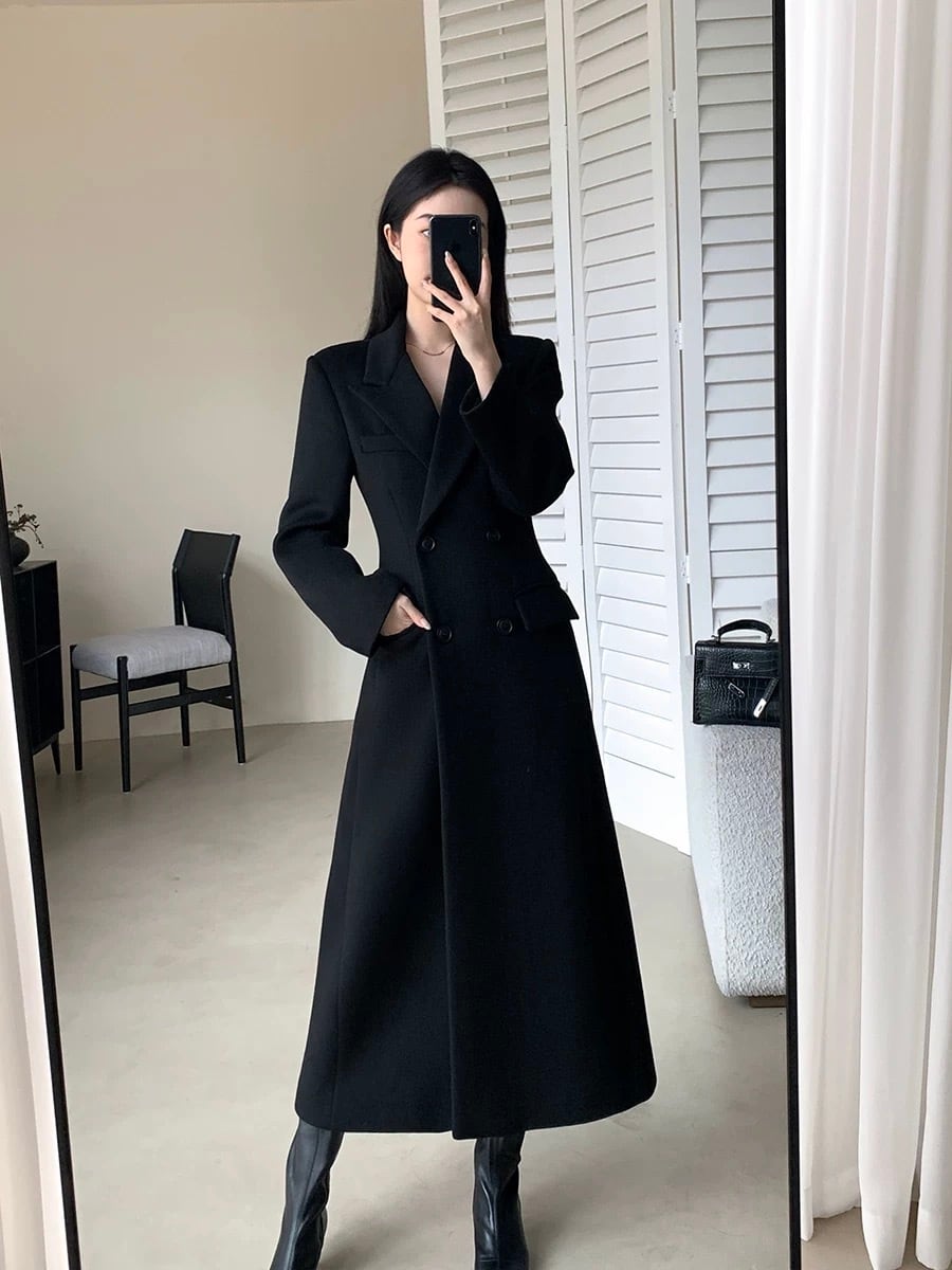 ダブルブレスト ロング丈 フレアシルエット ウールジャケット YH9670