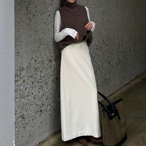 ウール100% スタンドカラー ショート丈 ニットベスト YH9739