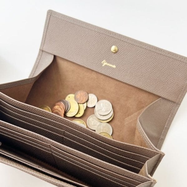 大きく開く小銭入れと、充実したカード収納力が魅力のギャルソン型長財布。