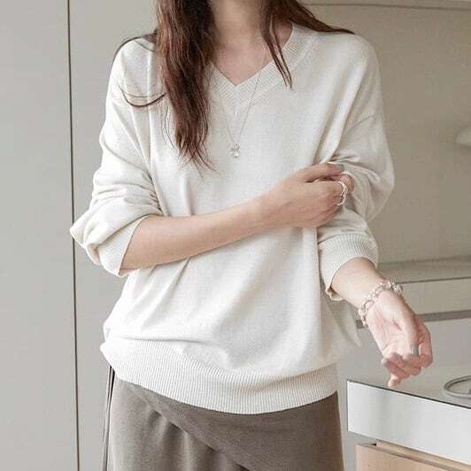 Vネック オーバーサイズ ニット ◆4col YH9678