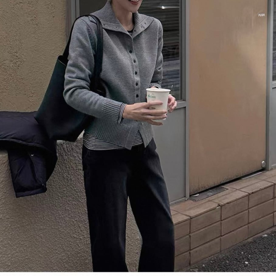 オープンカラー 長袖 ニット カーディガン ◆2col YH9820