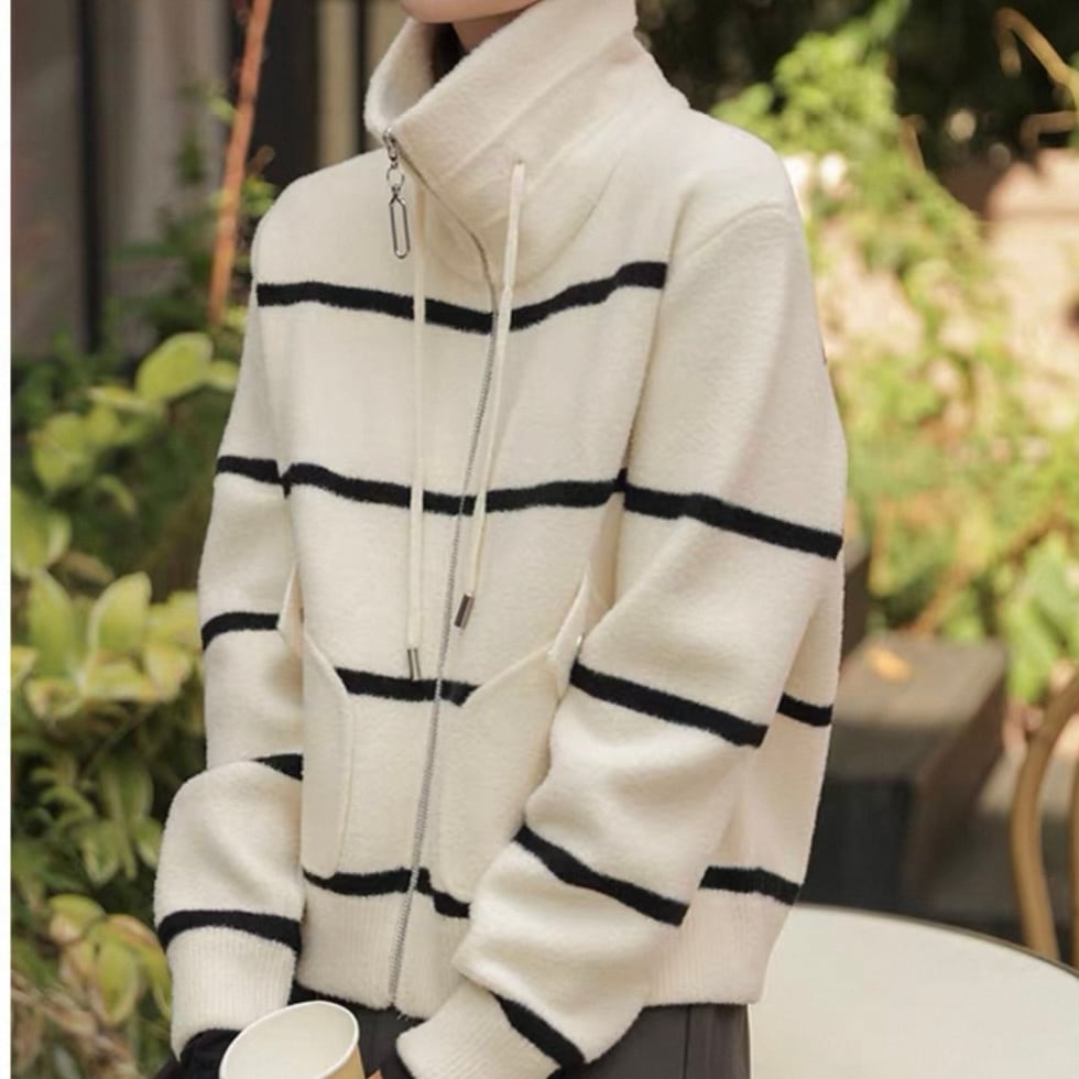 ジップアップ ボーダー クロップド丈 ジャケット ◆2col YH9817