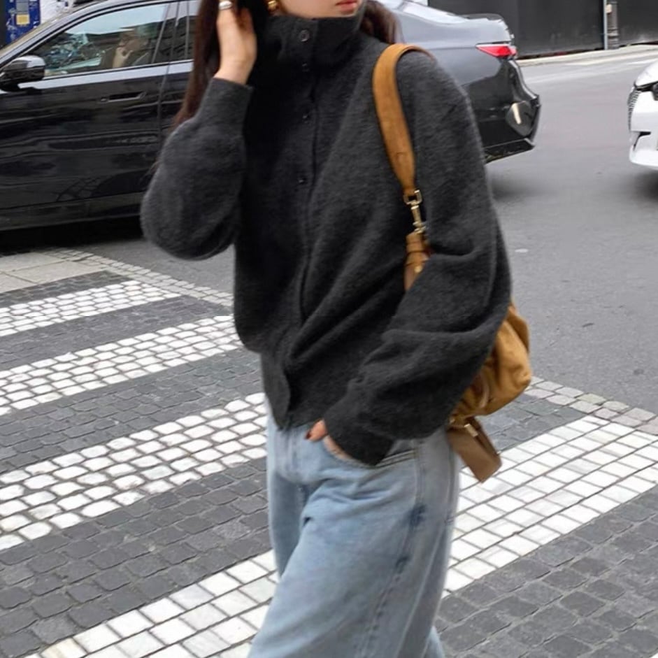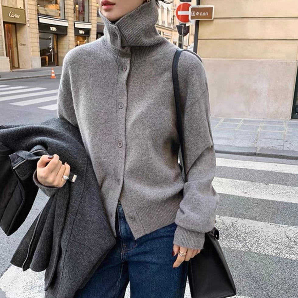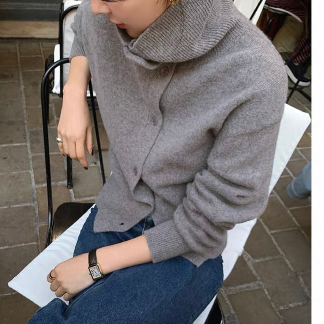 ボタンフロント 長袖 ハイネック ニット カーディガン ◆3col YH9815