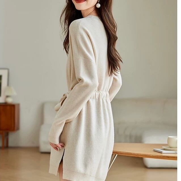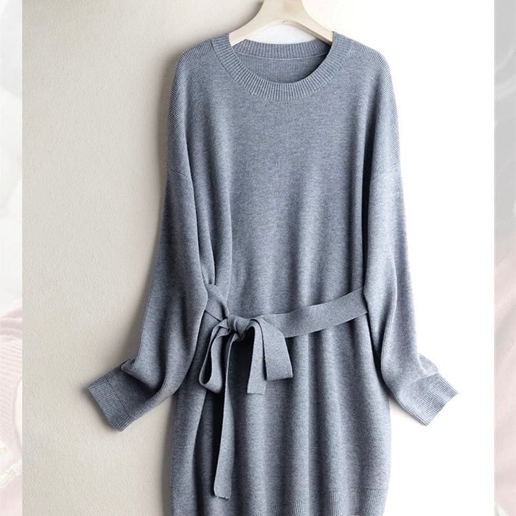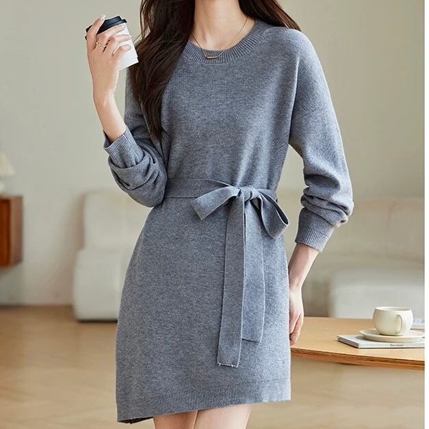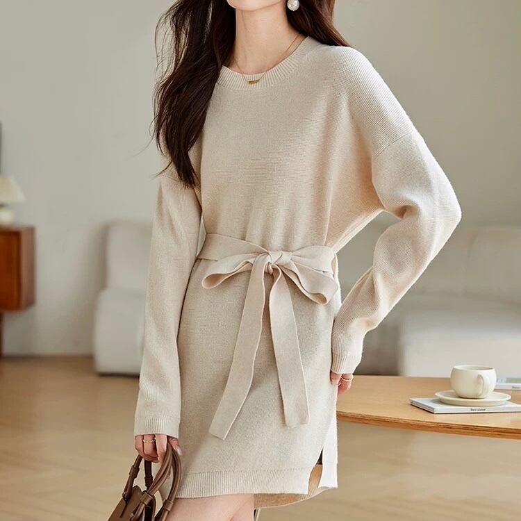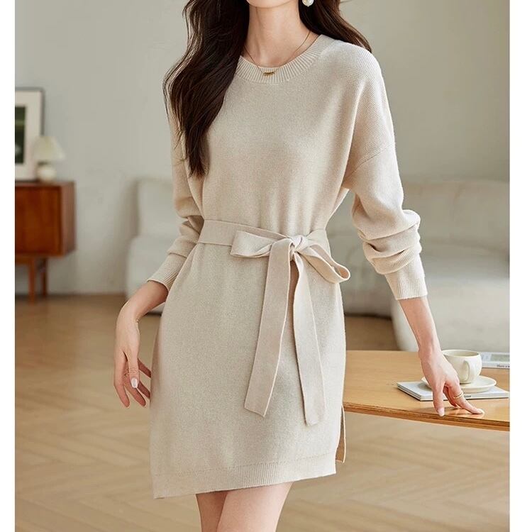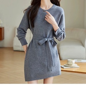 ベルト付き ミニ丈 長袖 ニットワンピース ◆2col YH9841