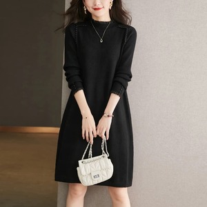 フリルネック 長袖 ミモレ丈 ニットワンピース ◆2col YH9828