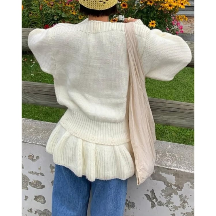 シンプルなデザインの中に、裾のフリルがアクセントになった長袖ニット。