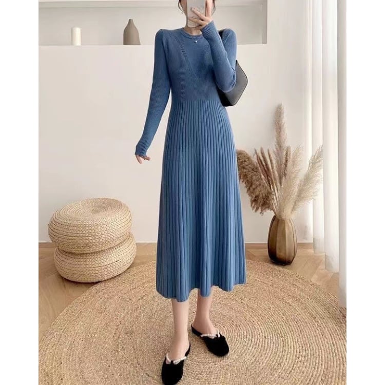 リブ編み ミモレ丈 ワンピース ◆5col YH9856