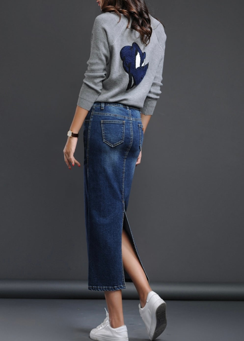 ハイウエスト タイト ミモレ丈 デニムスカート YH9862