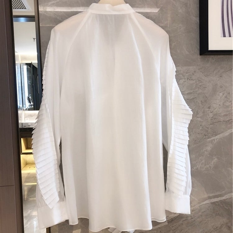 プリーツ リボン 長袖 シャツカラー ブラウス YH9864