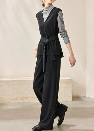 トップス×ベスト×ワイドパンツ3点セットアップ YH9892