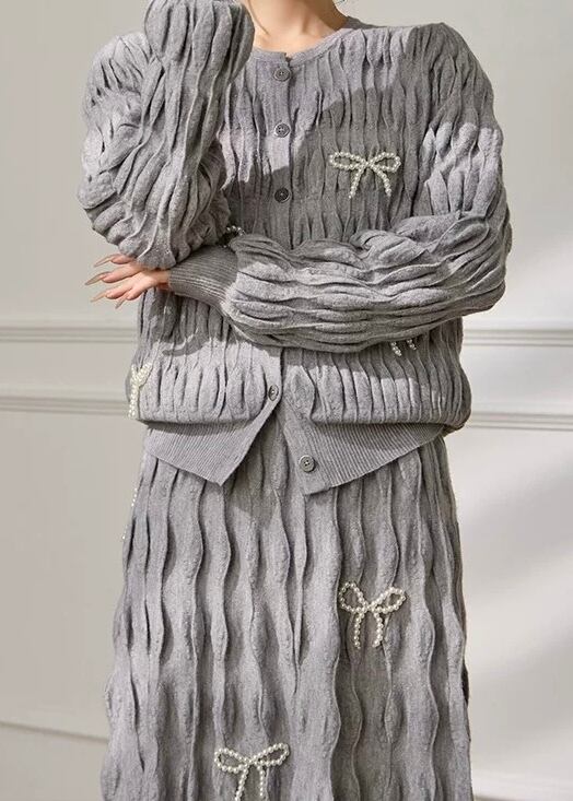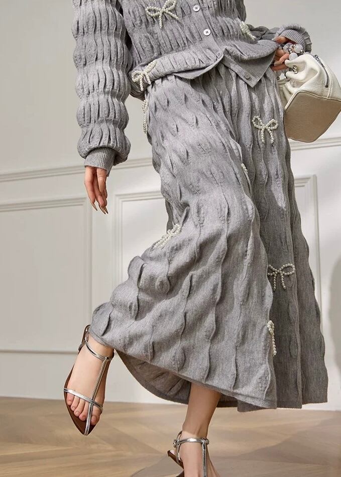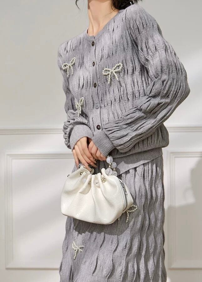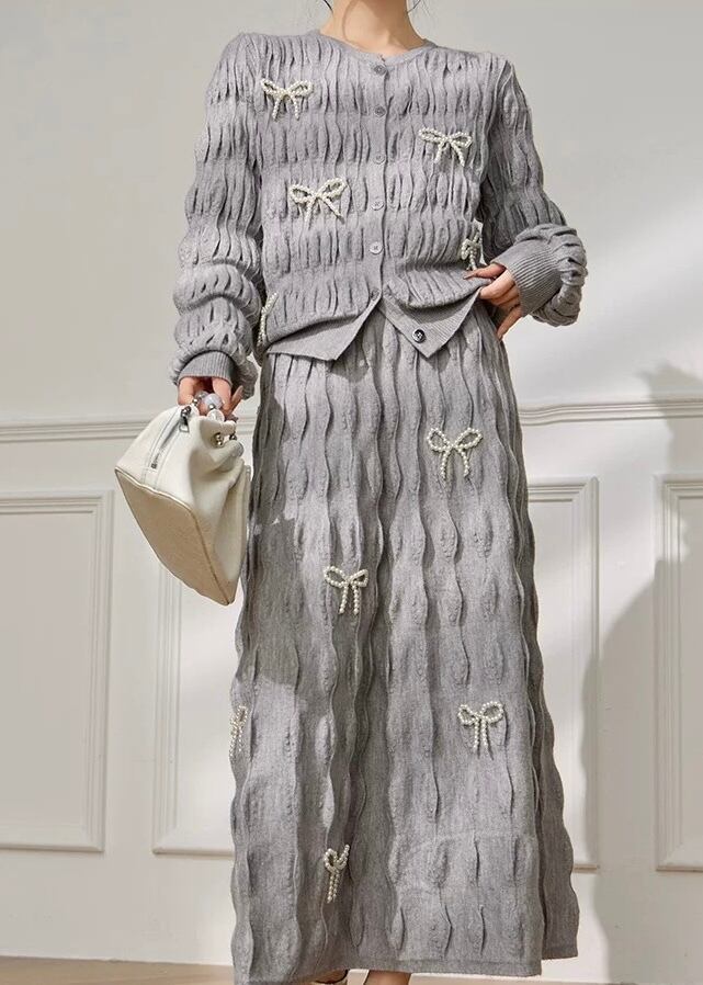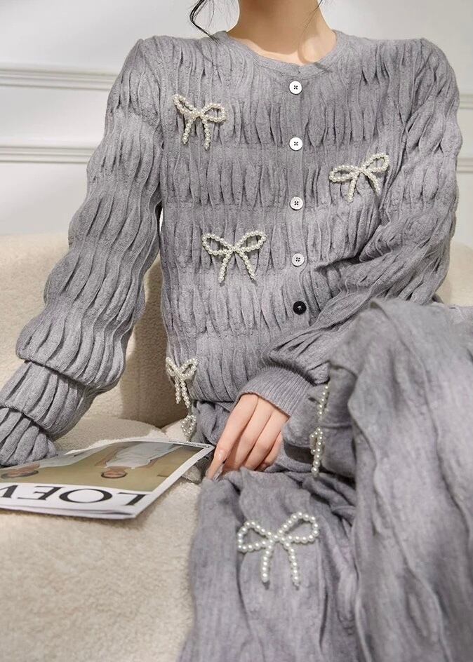 リボン ニットカーディガン・スカート 2点セット YH9912