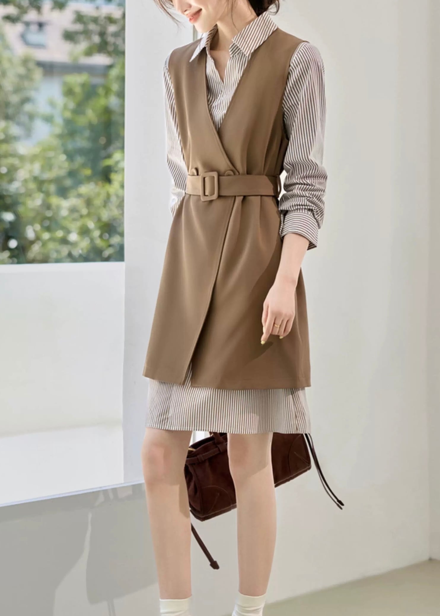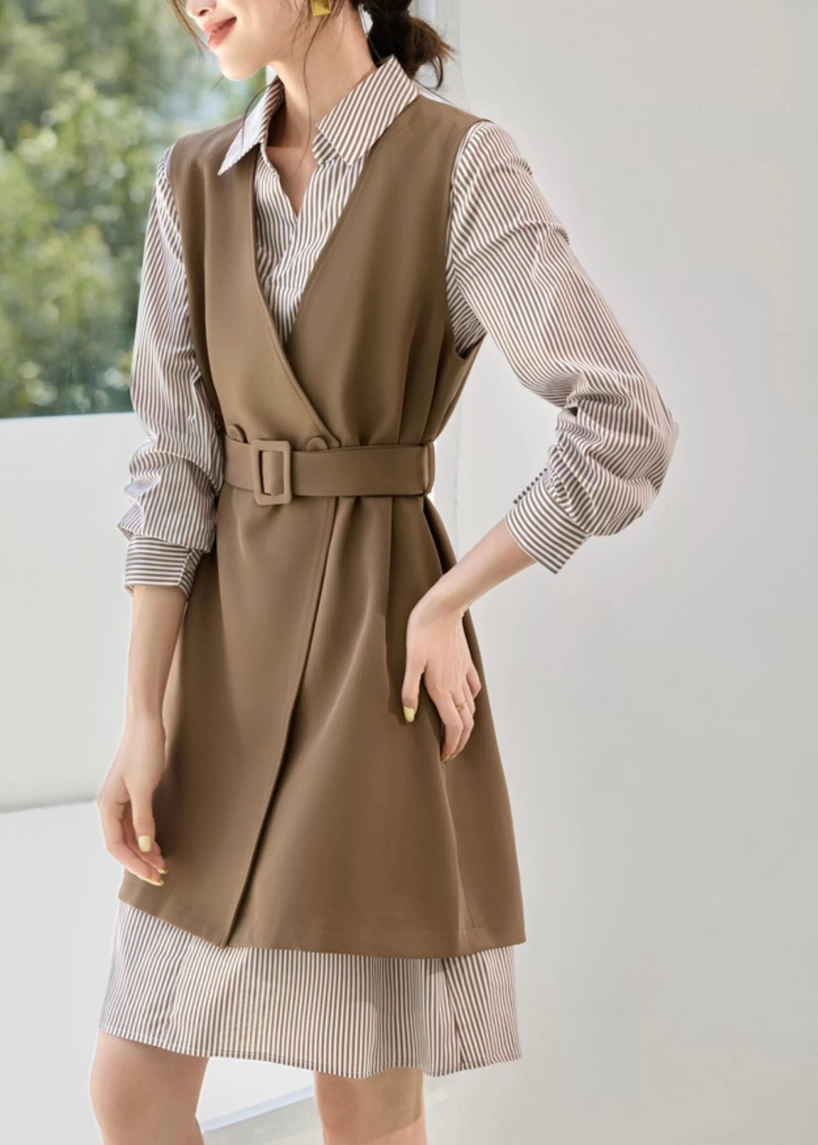 付属のベルトでウエストマークすれば、スタイルアップ効果も期待できます。