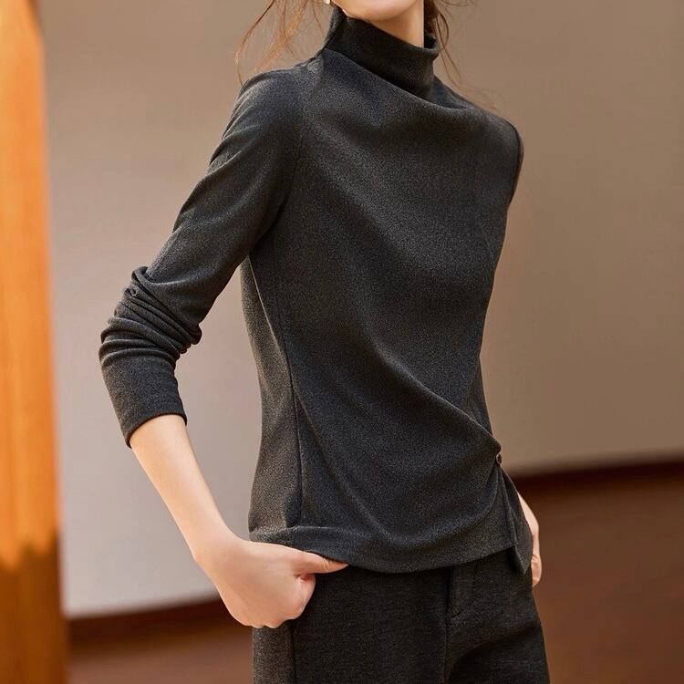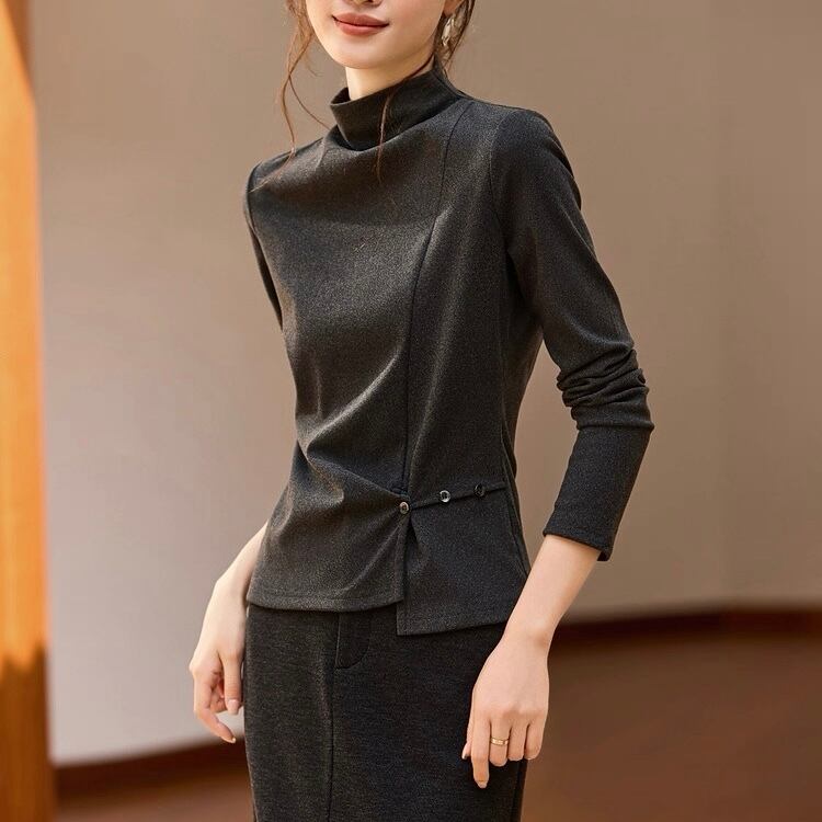 ウエストボタン 長袖 ハイネック シャツ ◆2col YH9971