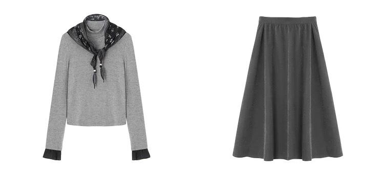 トップスとAラインスカートのセットアップです。