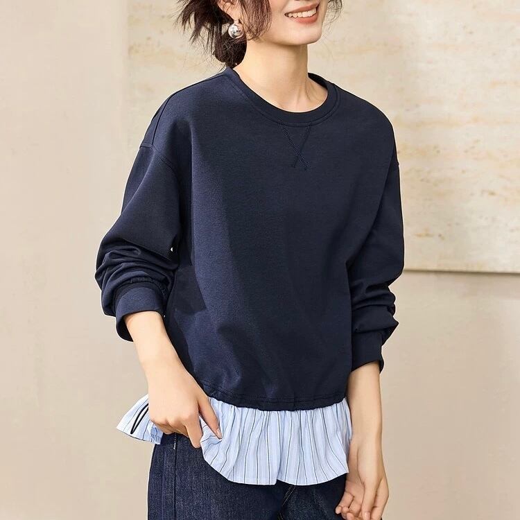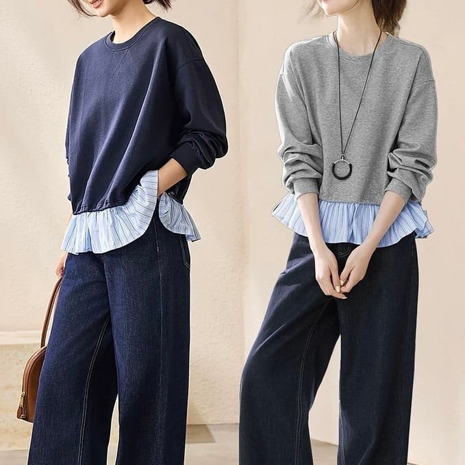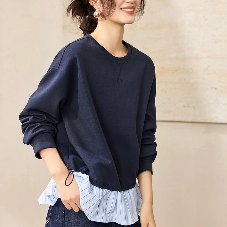 ドローストリング クロップド丈 切り替え スウェットシャツ ◆2col YH9954