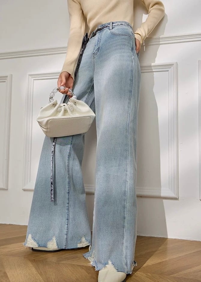 カジュアルながらもこなれ感を演出するワイドレッグデニム。