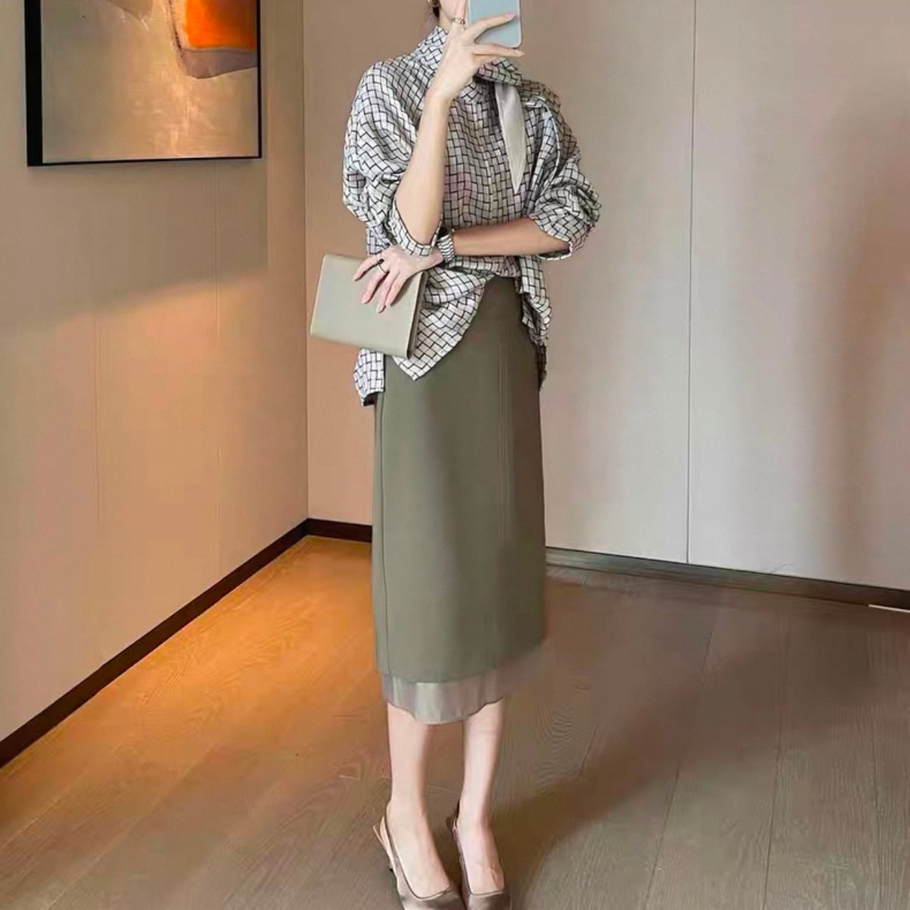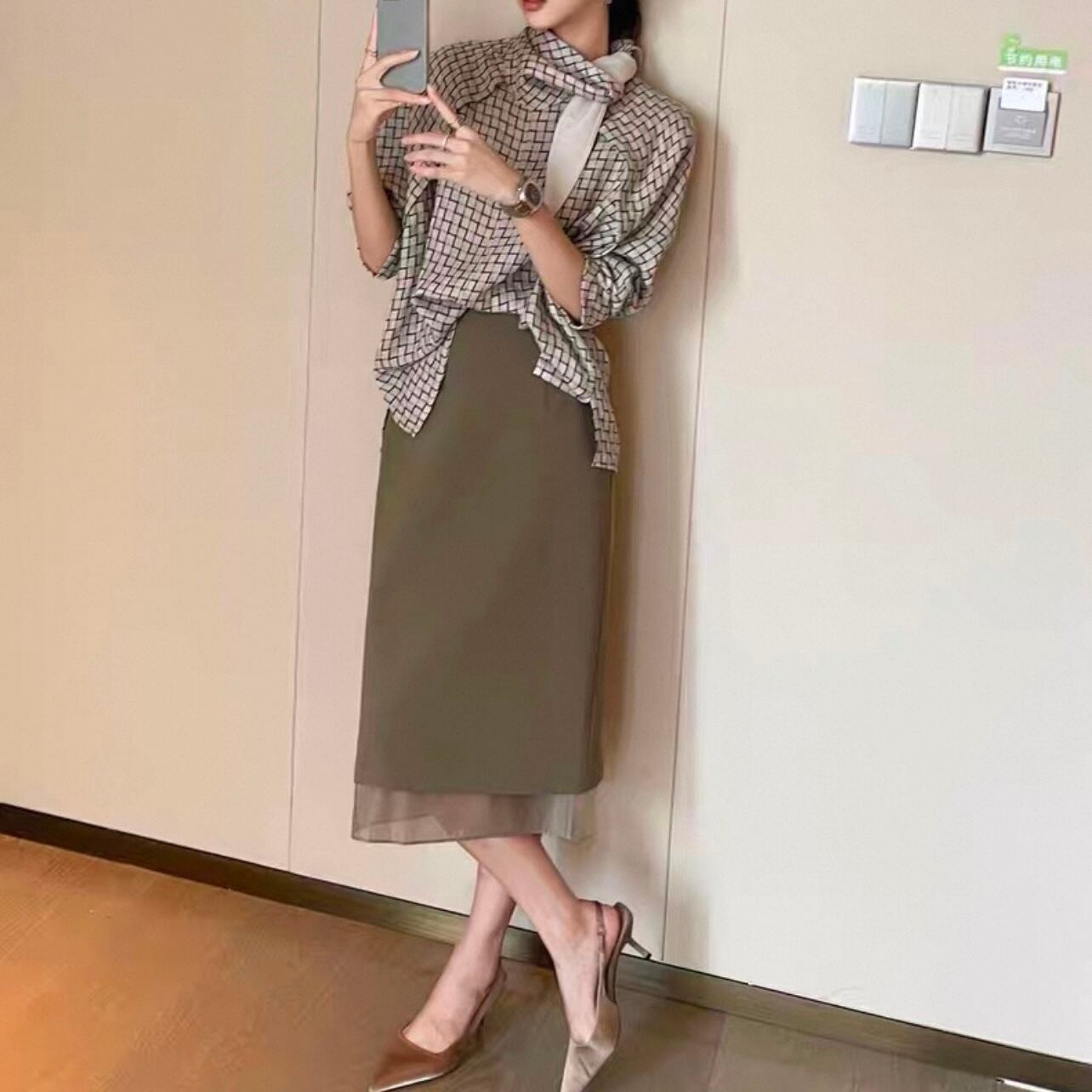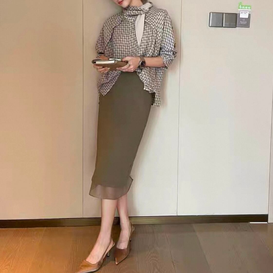 オフィスシーンはもちろん、カジュアルな装いにも合わせやすいデザインです。