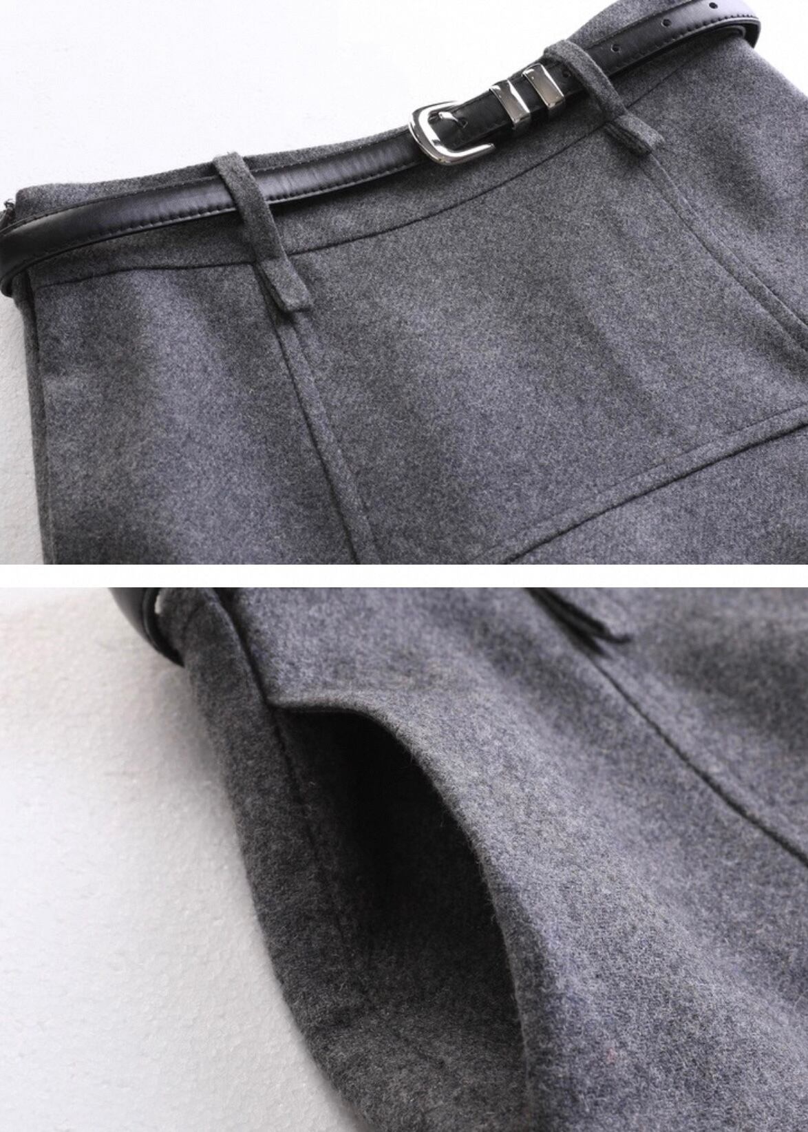 付属のベルトがウエストをマークし、Aラインシルエットをより美しく引き立てます。