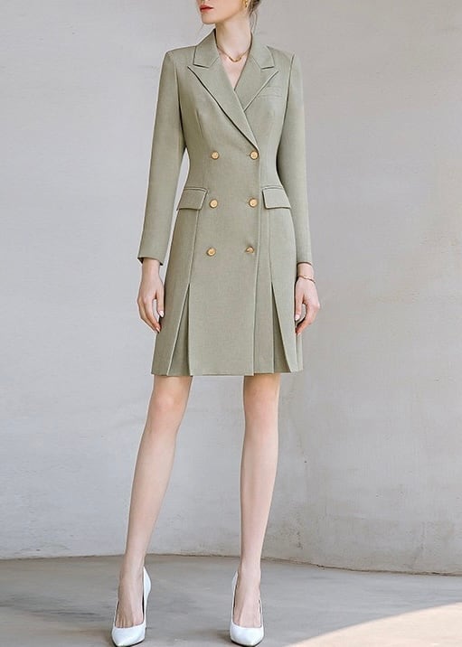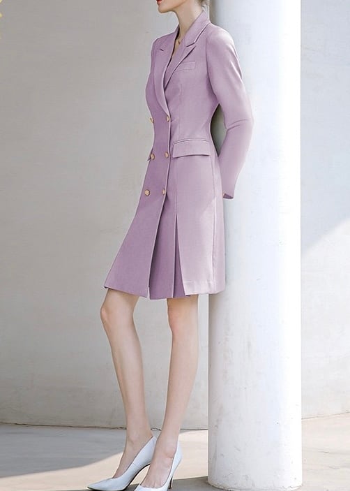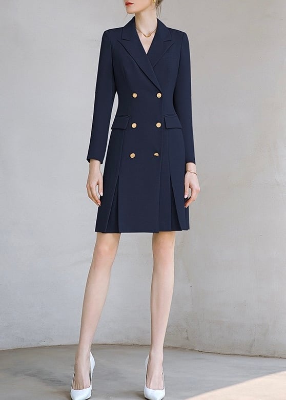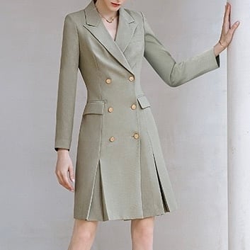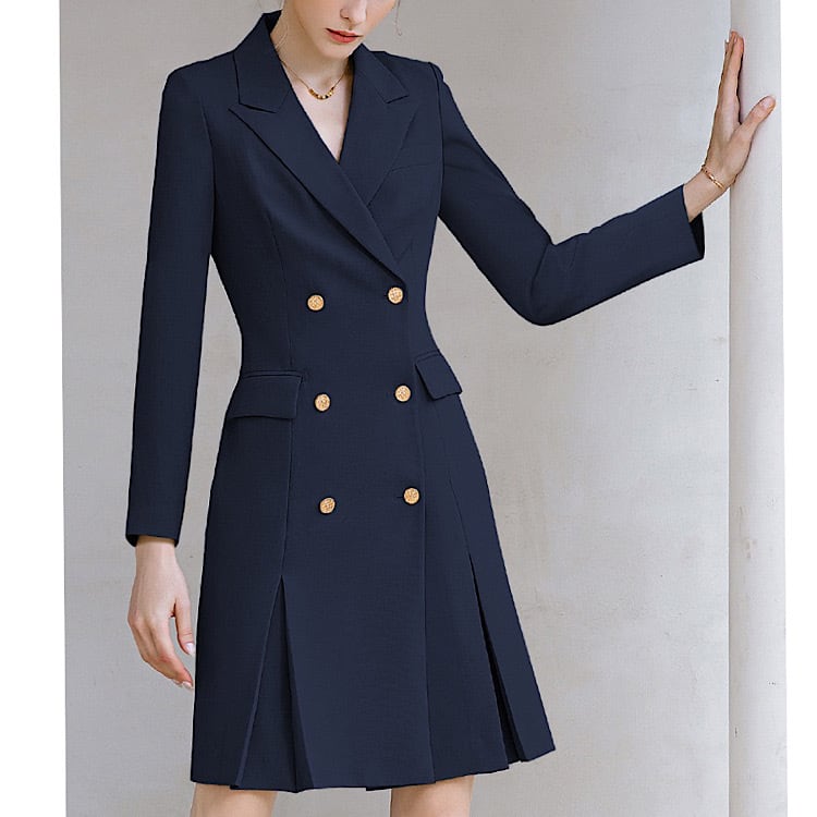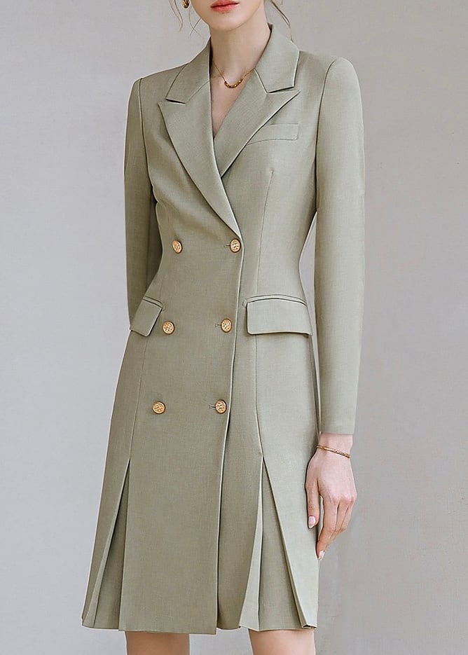 ダブルブレストデザインが特徴的なミディ丈ワンピース。