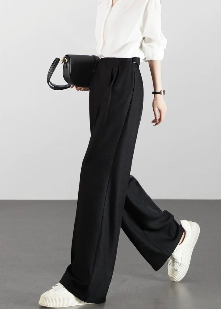 ハイウエストデザインで、脚長効果が期待できるロング丈パンツ。