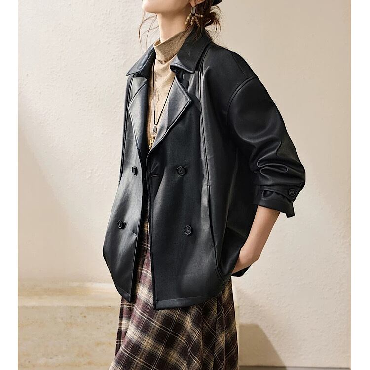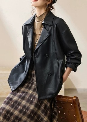 ダブルブレスト フェイクレザー ジャケット YH9963