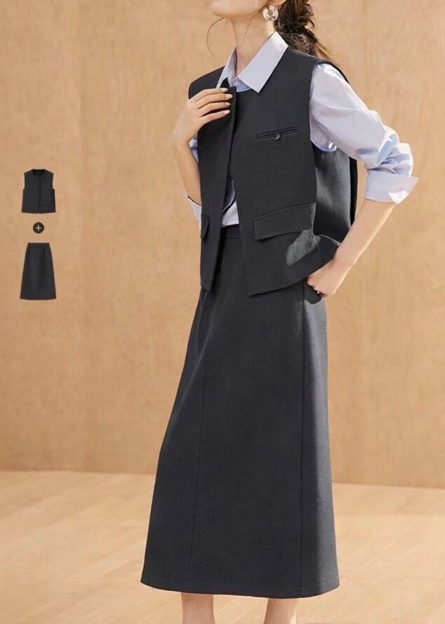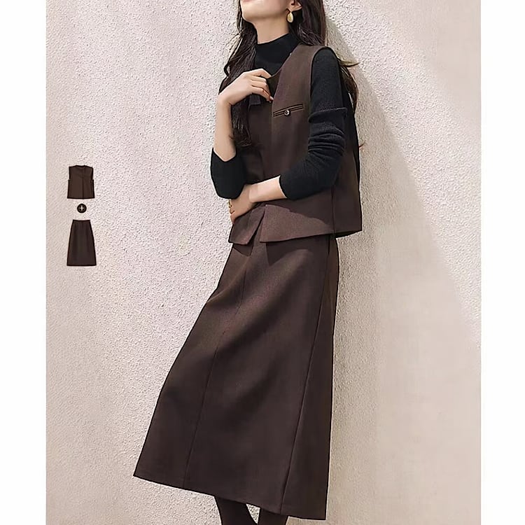 上品な印象を与えるベストとスカートの2点セット。