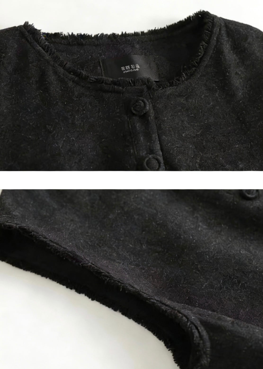 黒色生地は、初回〜数回の洗濯で色落ちや毛羽立ちが見られる場合がありますが、素材の特性によるもので不良ではございません。