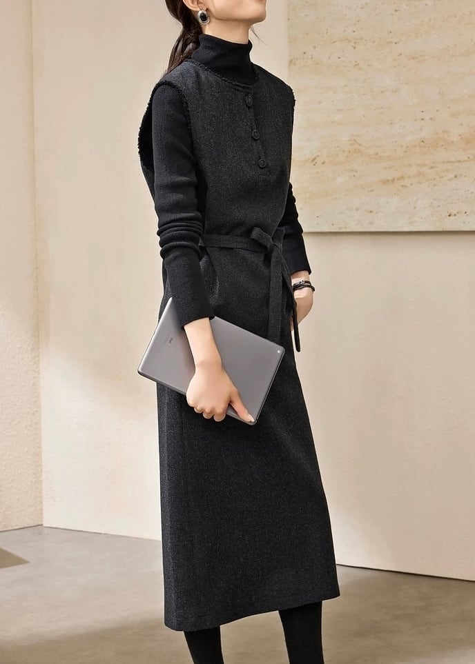 取り外し可能なリボンベルト付きで、ウエストマーク&スタイルアップ効果も。
