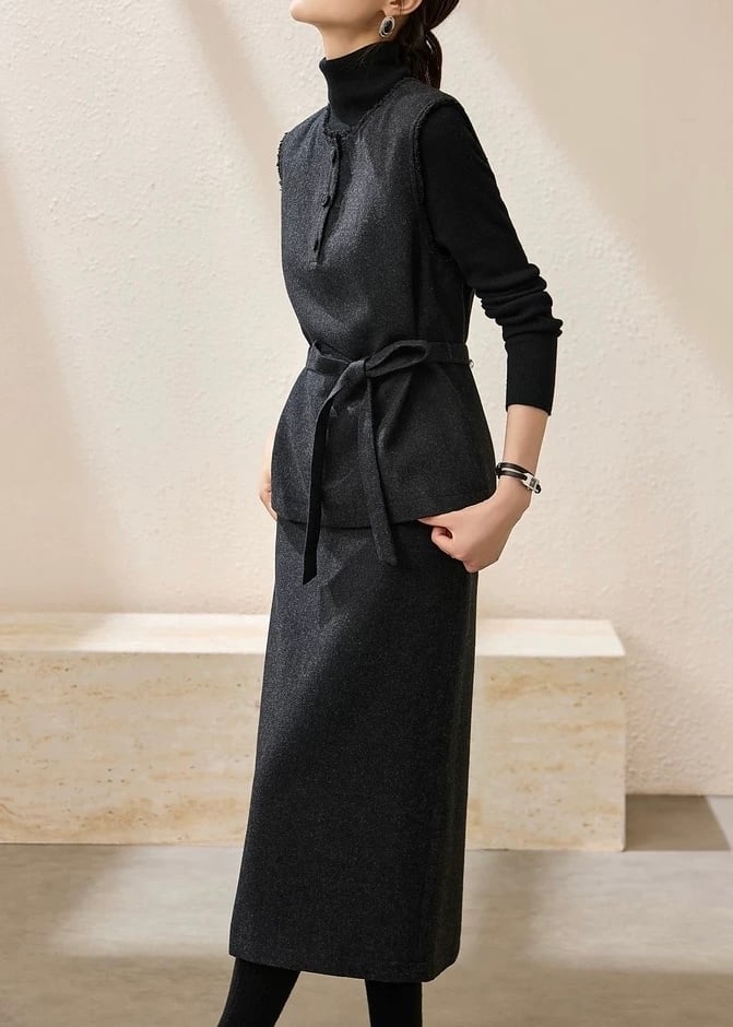 ベスト・Aラインスカートの組み合わせで、きれいめな通勤コーデがこれ1つで完成。