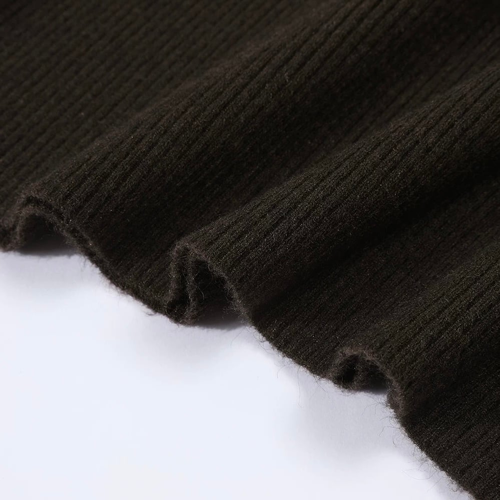 アシンメトリーなデザインが目を引くニットプルオーバー。