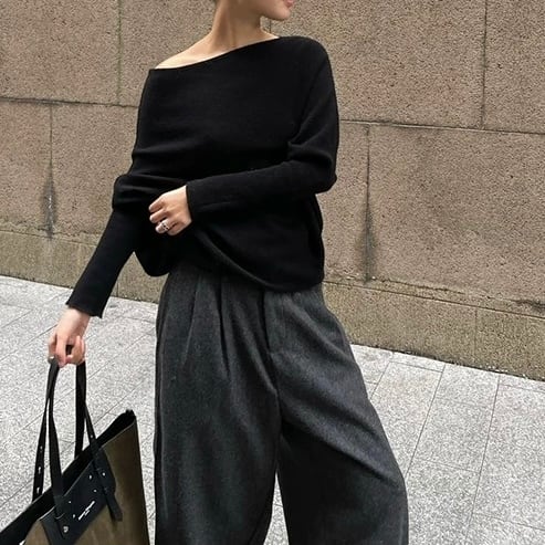 ドルマンスリーブが、女性らしい柔らかな雰囲気をプラスします。