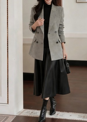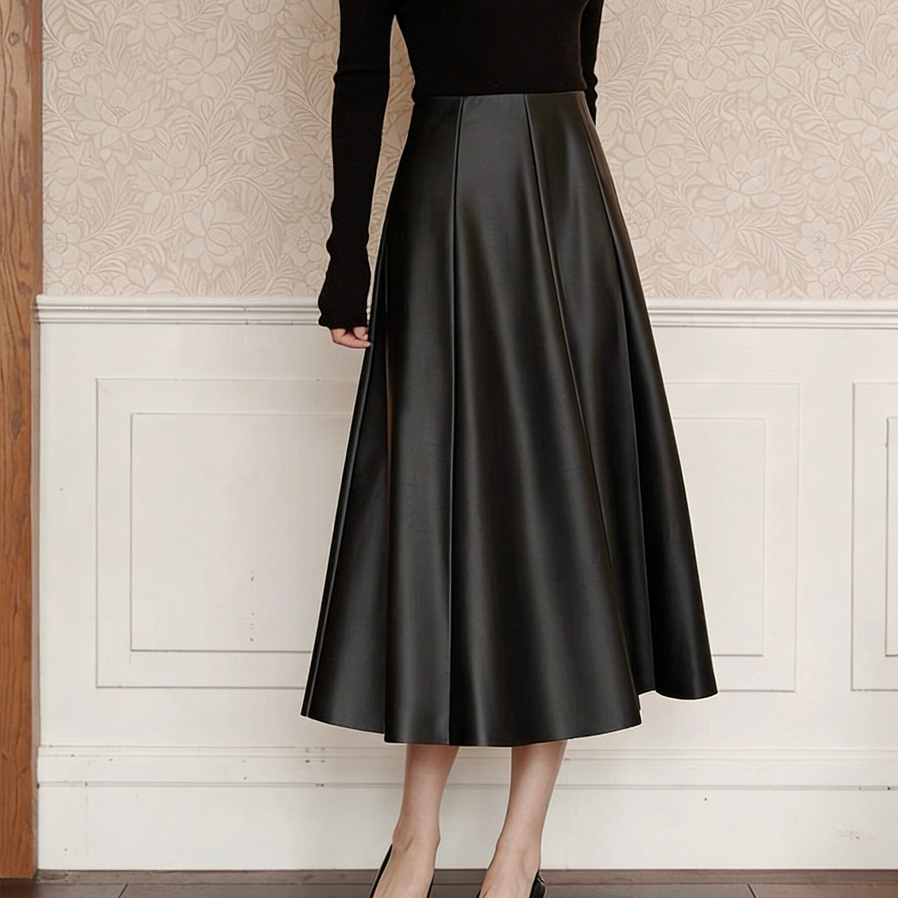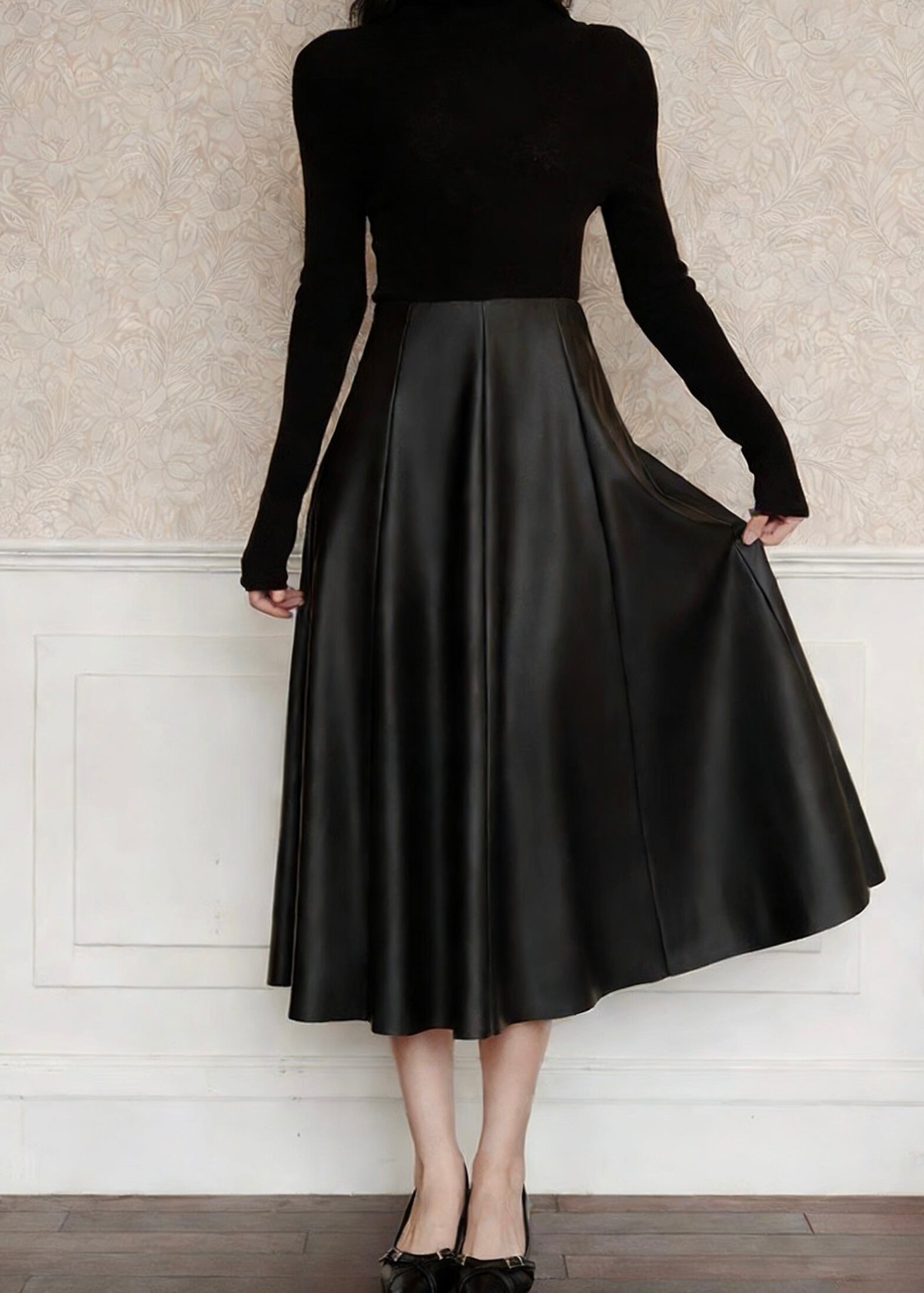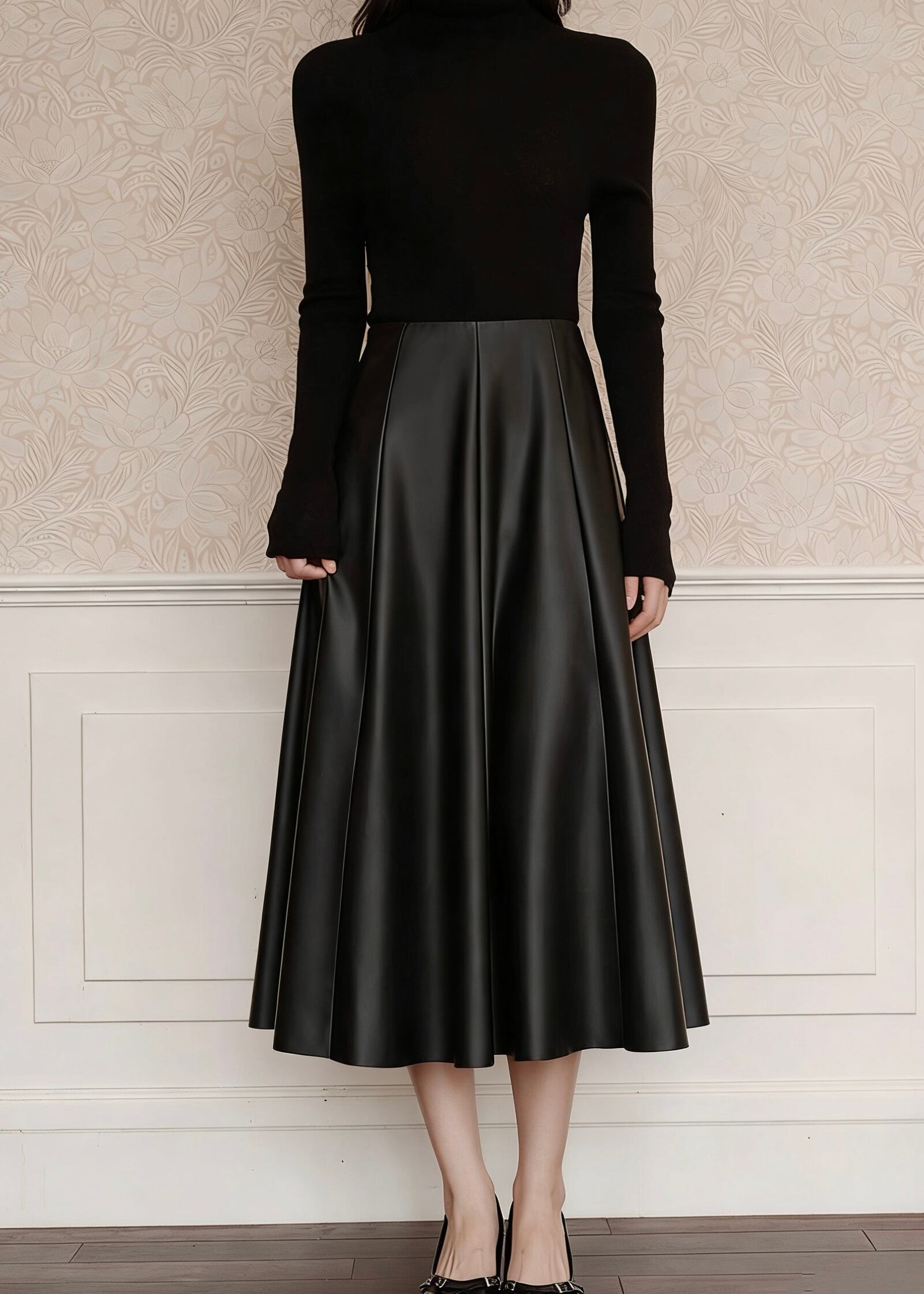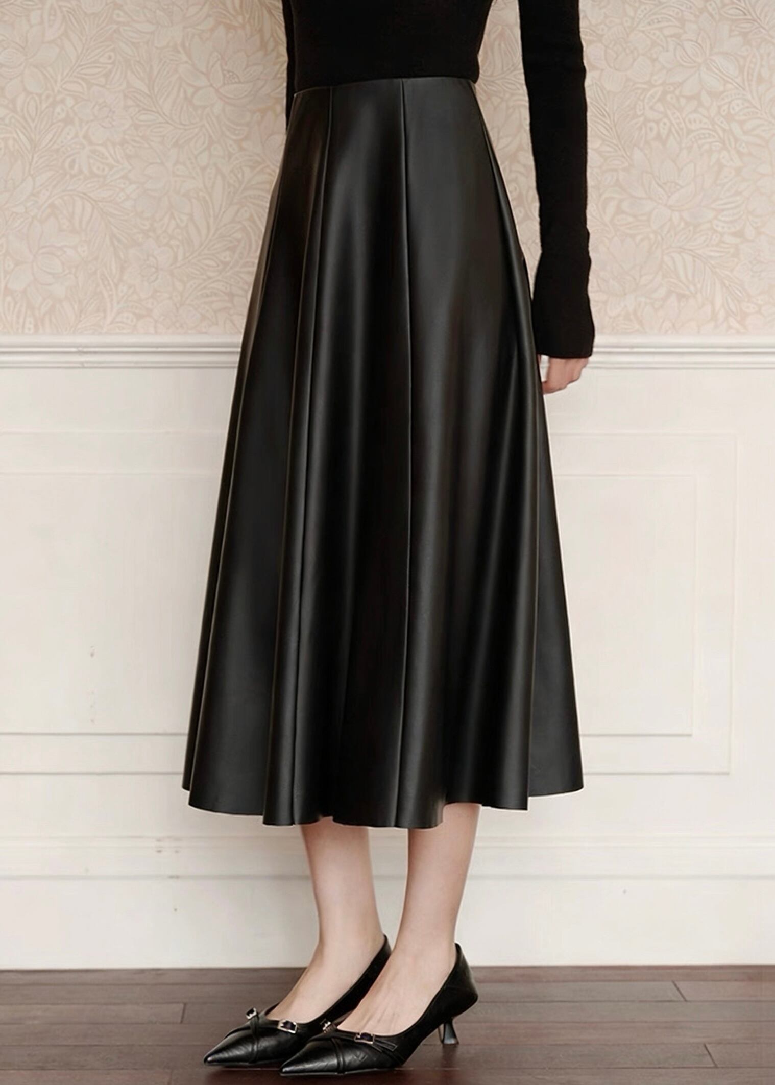 ロング丈 Aライン フェイクレザー スカート YH10008