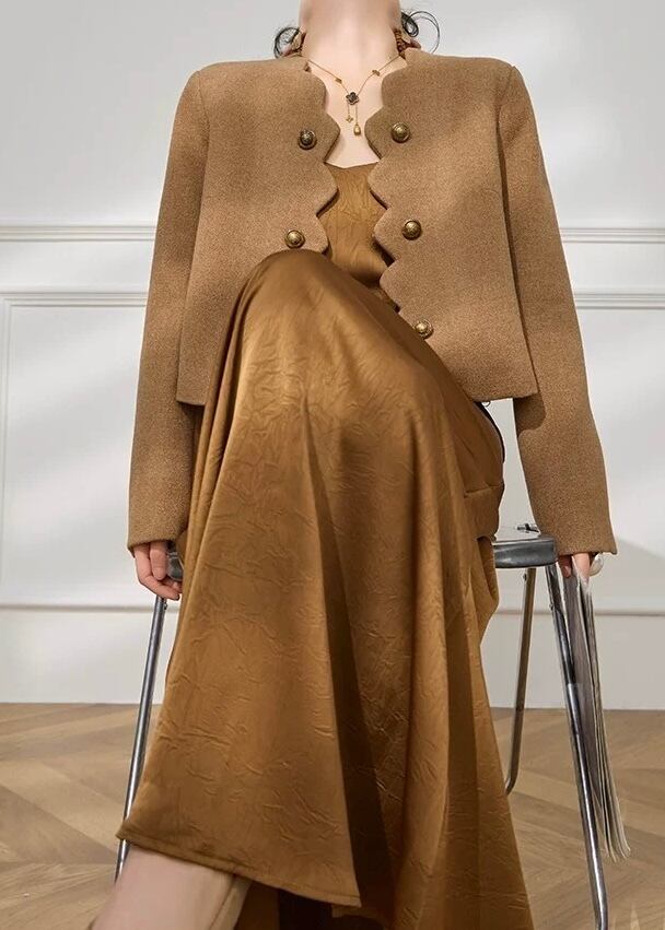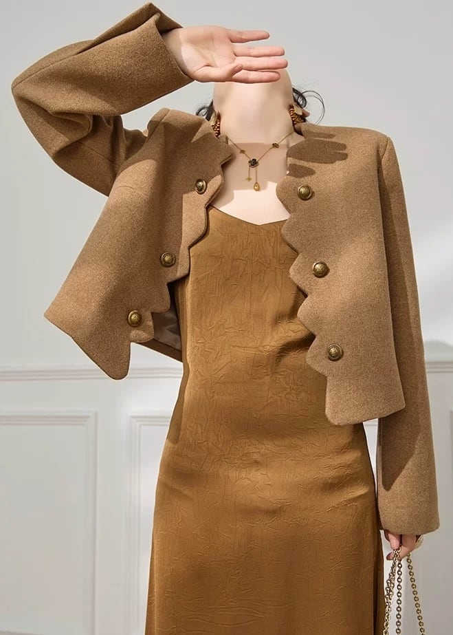 ダブルボタンが目を引くショート丈ジャケット。