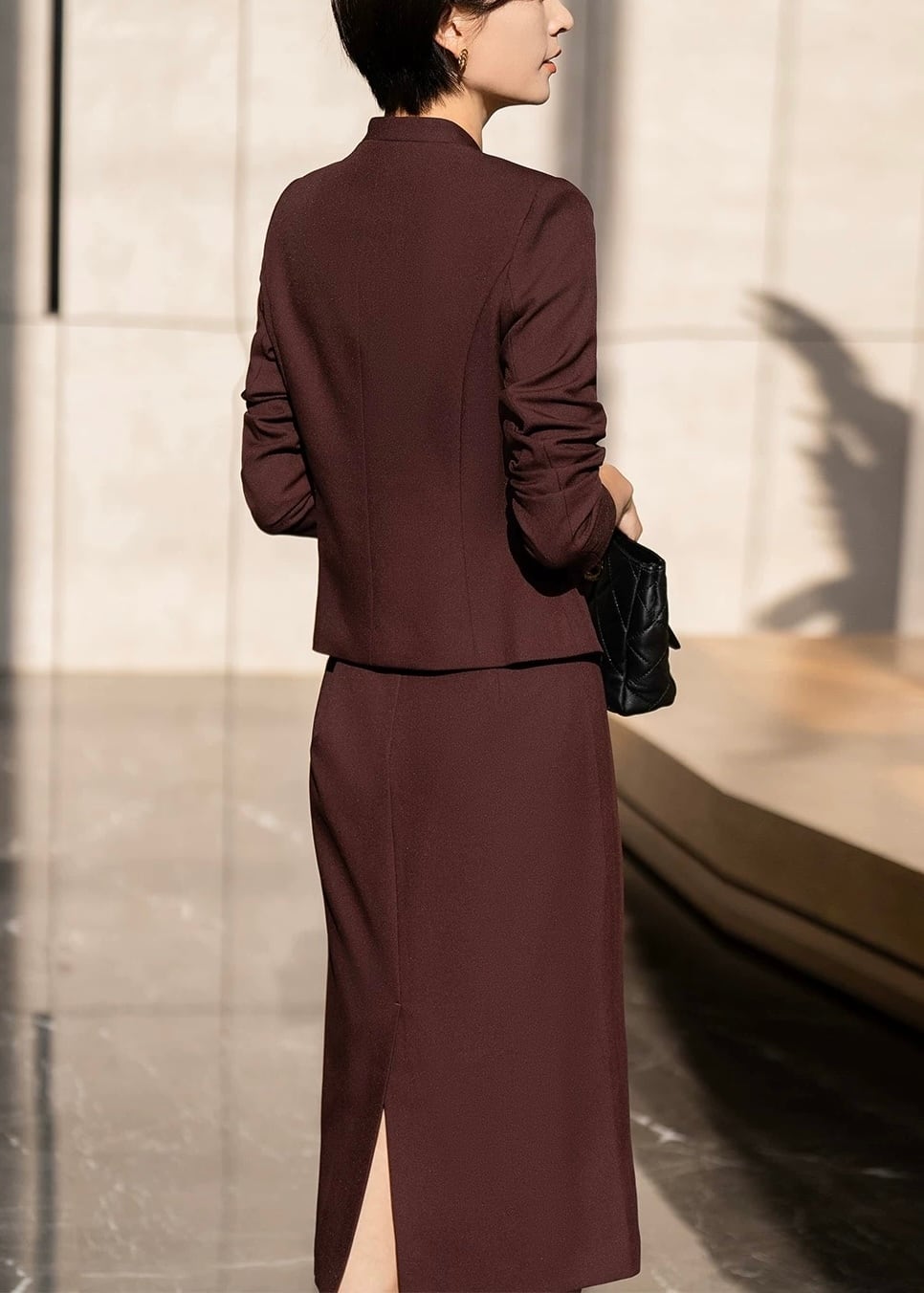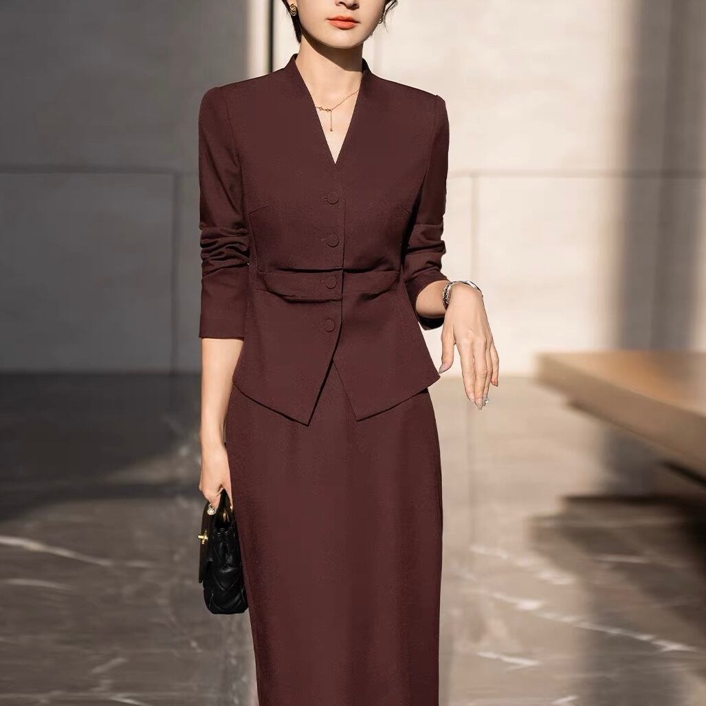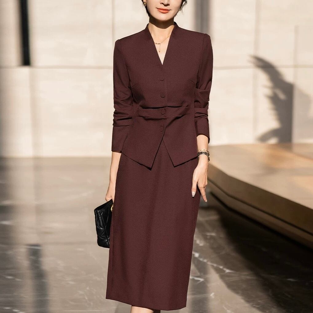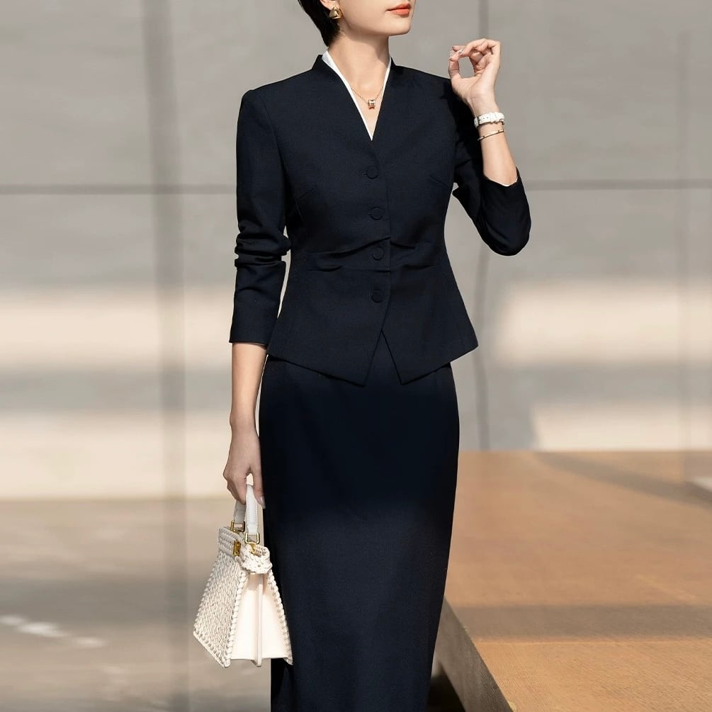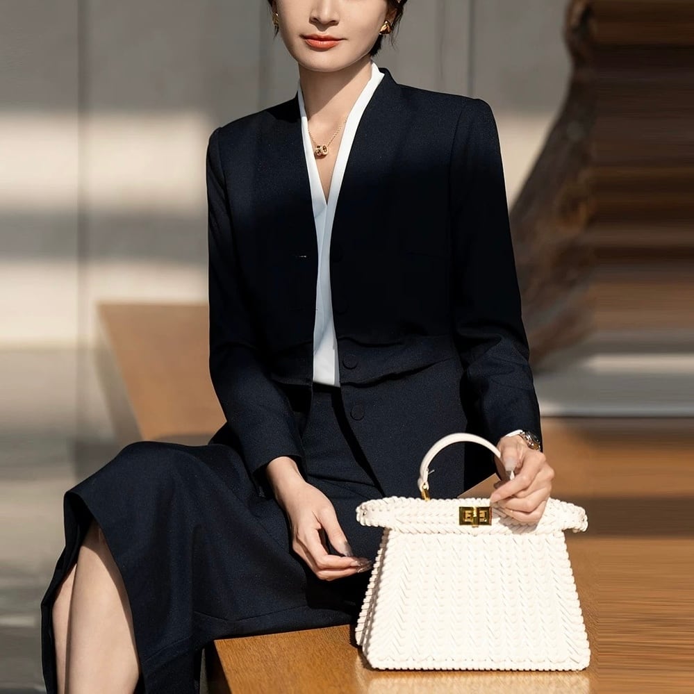 上品な印象を与えるデザインで、オフィスシーンはもちろん、フォーマルな場面にも適しています。